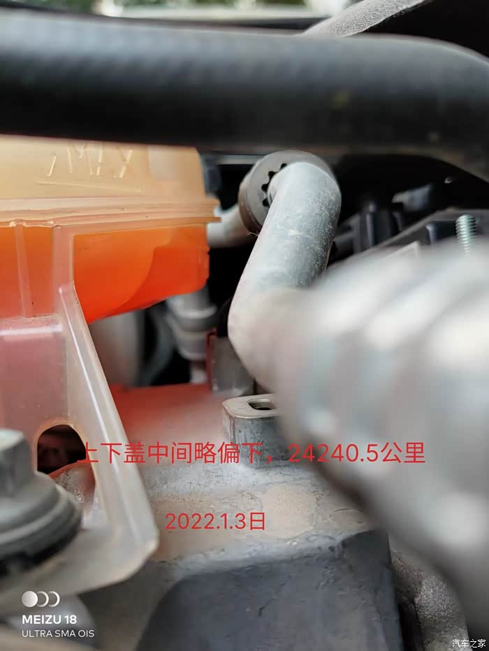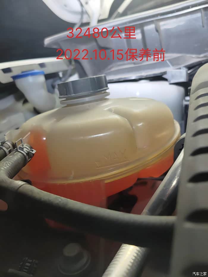 我用车到现在(32480公里),在15730公里保养时加了点防冻液,一直到现在就没再添加过。上次保养拍了张照片,这次保养时又拍张对比下。