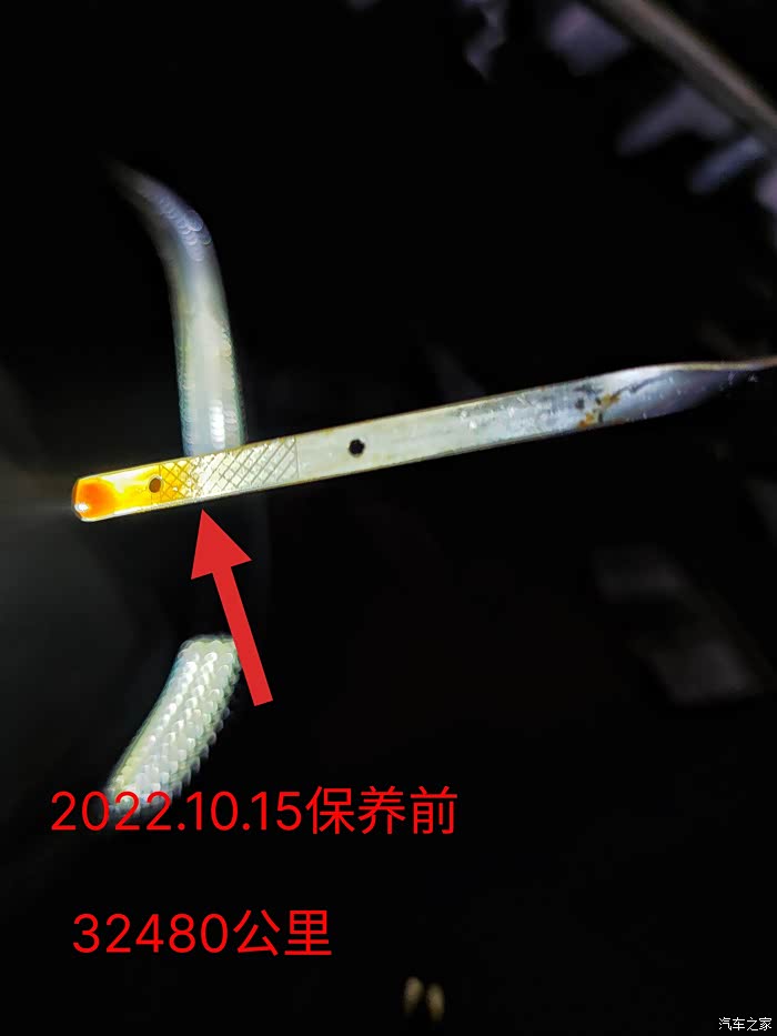 前天(10.15)去五保,距离上次保养开了8400多公里。上次保养后,特地把机油液位拍照留存,这次保养前又拍照对比下。