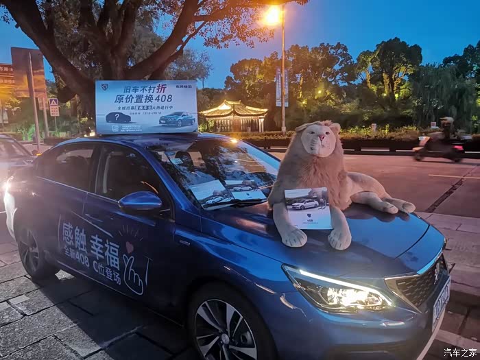 晚上去揽胜门锻炼。走着走着,突然发现有一个车上有站着一个狮子。 一下子让我想到了,应该就是四儿子店在做活动。走近一看,果然有几个销售站在车旁边看的人还可以比较多的。