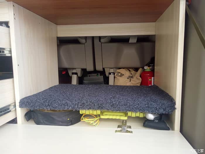 用拆座椅后面做个柜子能放冰箱跟户外炉具,还有食品。。。在床垫厂定制异性无胶棕垫!