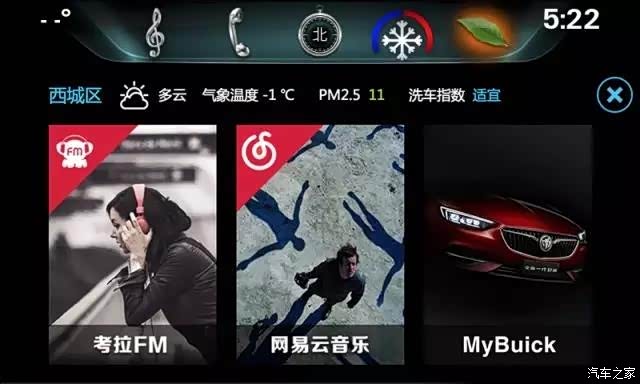 以上汽通用汽车新一代车联网技术平台为背书,别克全新一代君威向以“云”为中心的车辆应用与服务迈出第一步,创新推出BUICK互联应用车载APP,不仅能够快速、准确地获取4S店服务信息,还可在线收听考拉FM网络电台、网易云音乐。