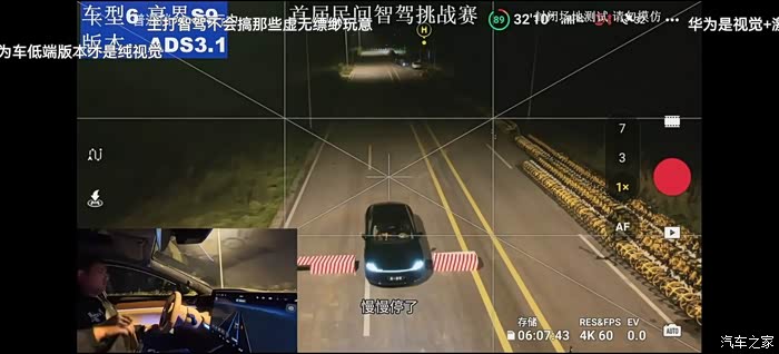 最后是享界S9,跟问界M7一样在60和40公里时速下都通过了限宽墩,不同的是,问界M7通过限宽墩没有减速,而享界则会自动减速慢慢通过限宽墩。