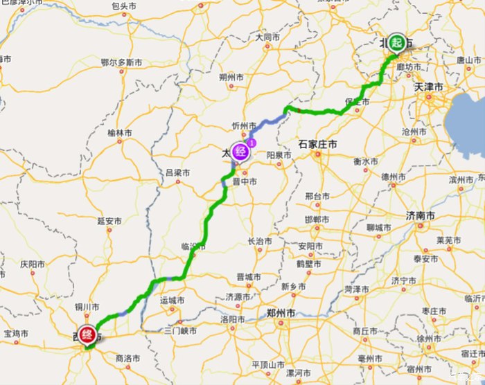 早上5点半北京出发,过河北-山西 到西安。全程高速,过山西时候隧道较多,注意保持车速,隧道口限速较严格