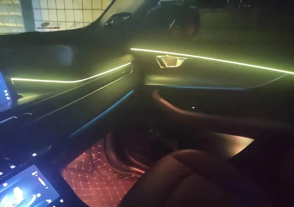 🎉🎉🎉:改装后的效果:改装后整个车里面最大的优点就是提升了颜值,一打开车门中控台,门板,地板都有一种柔和的光线,让我们看着非常的愉悦舒服,制造了浪漫的氛围,特别是晚上驾驶的时候,看着自己时尚的瑞士氛围,瞬间心情也变得愉悦起来,想一想车机上播放喜欢的音乐,氛围灯跟着音乐旋律而跳动,简直就是移动的KTV。