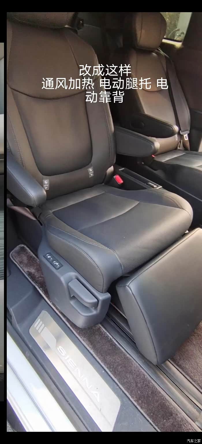 我是格瑞维亚尊贵普通座椅。 有没有朋友改成和塞纳那种高配座椅的?靠背电动。腿托电动,通风加热。不喜欢航空座椅,所以只能原车基础上改成高配,提高舒适度