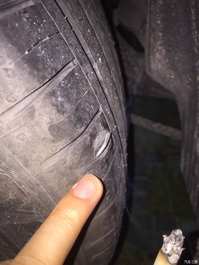 我上路破的轮胎,也是右前轮,跟楼主一样,也是测胎,不过我没有换胎,伤口不大,不认真看,看不出来,师傅跟我说补胎就行,目前为止,也没什么问题,还没上过高速。。