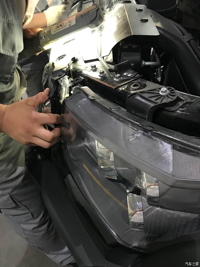 原车亮框有卡扣固定,拿长点的改锥轻轻一翘
