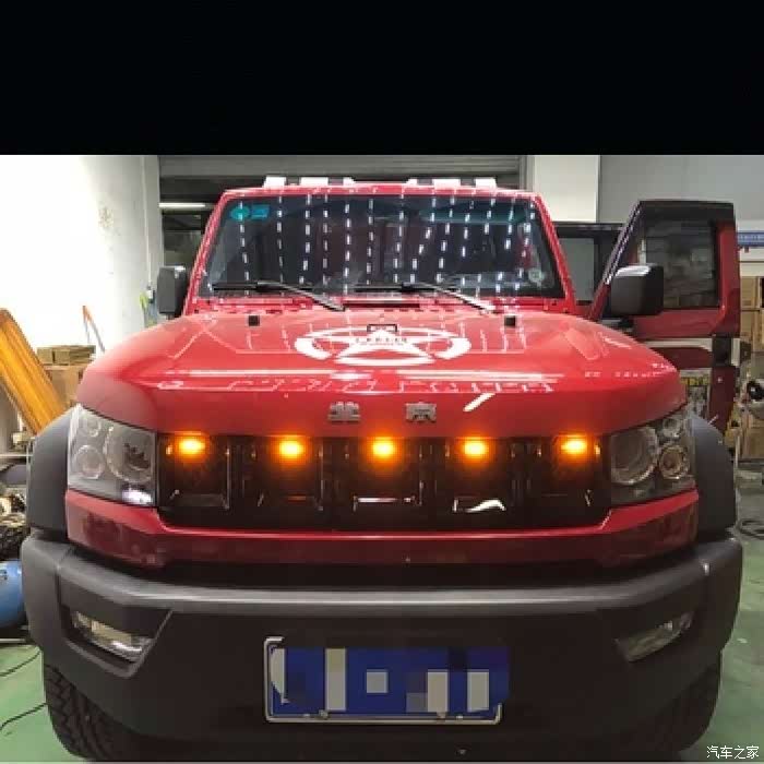 BJ40换熏黑中网框一套,加五只小黄灯,闪亮登场