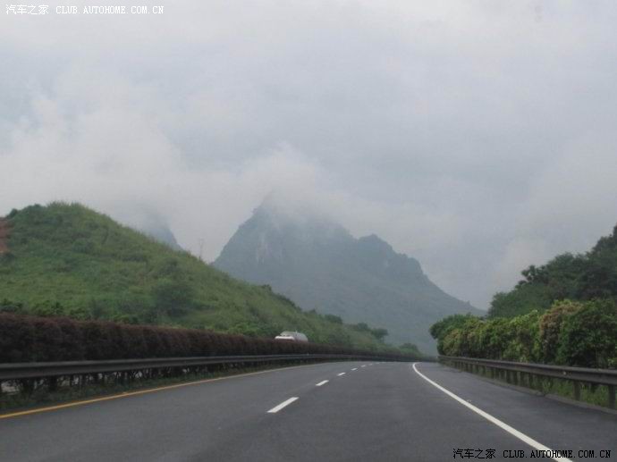 由于出来的早,路上没什么车。但由于下雨,车速就一直保持80到100公里时速。到韶关南岭公园附近,看看周围风景已经有了几分姿色,