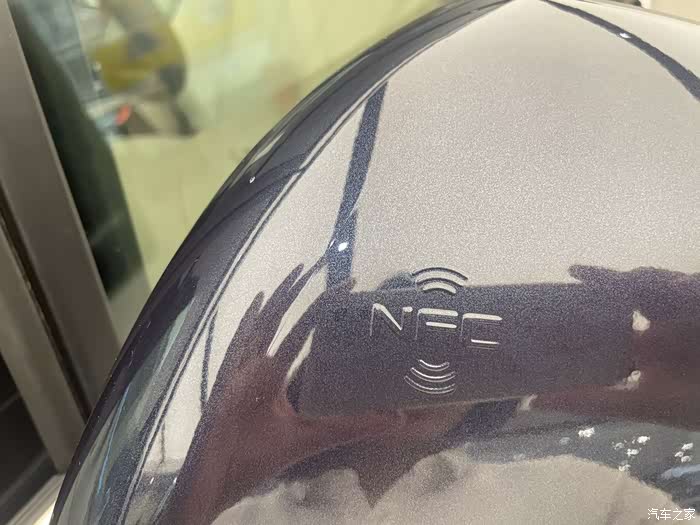腾势d9左侧后视镜有一个NFC的标志,手机可以进行车辆的解锁。