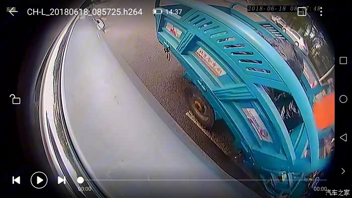 侧摄像头拍到的,是运垃圾的车辆。车还比较新,开车的是个“二把刀”。