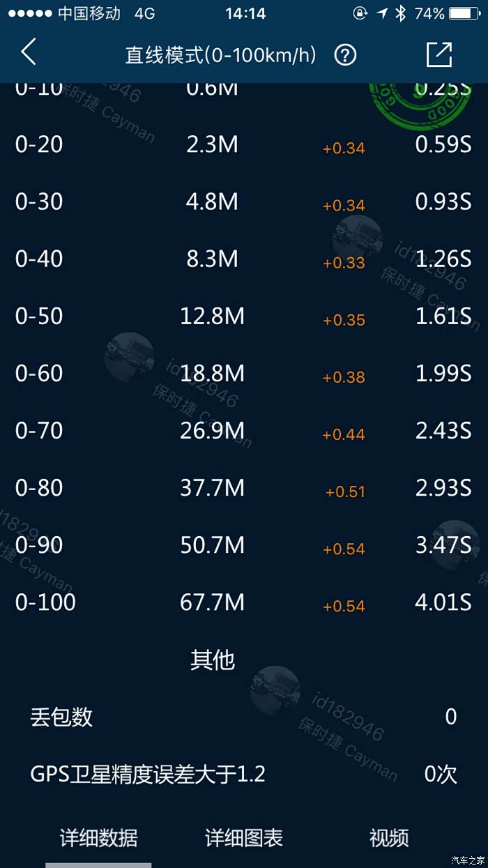 当然,很多朋友关注的01我真的没有测试,当天有雨地面湿滑而且将近2万公里的原厂轮胎实在滑,两个大汉坐在车里严重打滑状态下还能有5.1秒的成绩,已足够匹配718底盘发挥更好的属性。汽家有测试718的01加速时间有两个成绩,我们用原厂最好的5.17秒来说话,250匹原厂马力能到这个数据,轮上340匹马力进4秒绝无压力,究竟是小4还是大4已经不是很关心了。因为在路上可以和A45、S3等小钢炮较量一番,再也不是他们眼中所谓买这车就是个花瓶好看不中用。