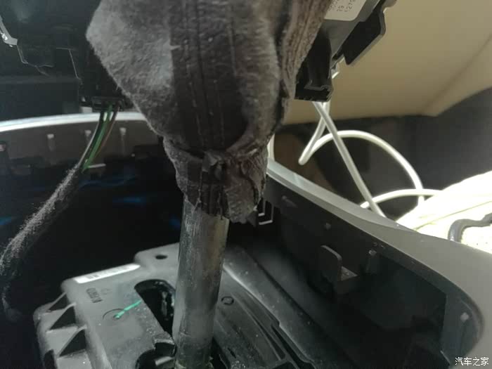 下面有个扎带,要用美工刀弄断,同时要准备一根新的,换好档把头后还扎在这个位置
