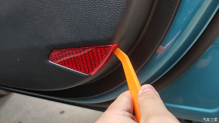 解锁车辆,打开车门等十秒灯熄灭后就可以直接进行拆装,用翘板撬外侧上角处