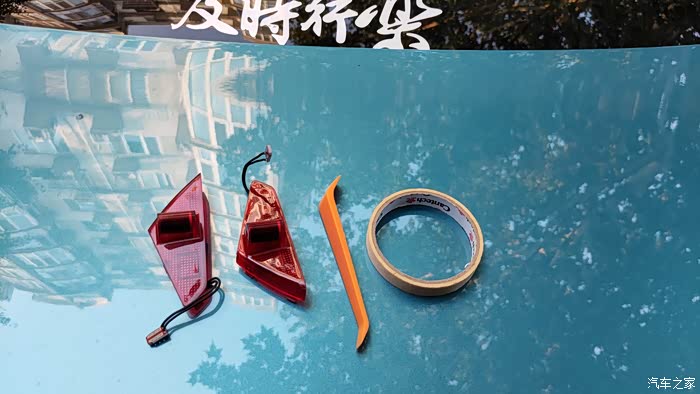 准备好提前购买的无损替换迎宾灯,安装工具包括小翘板和胶带