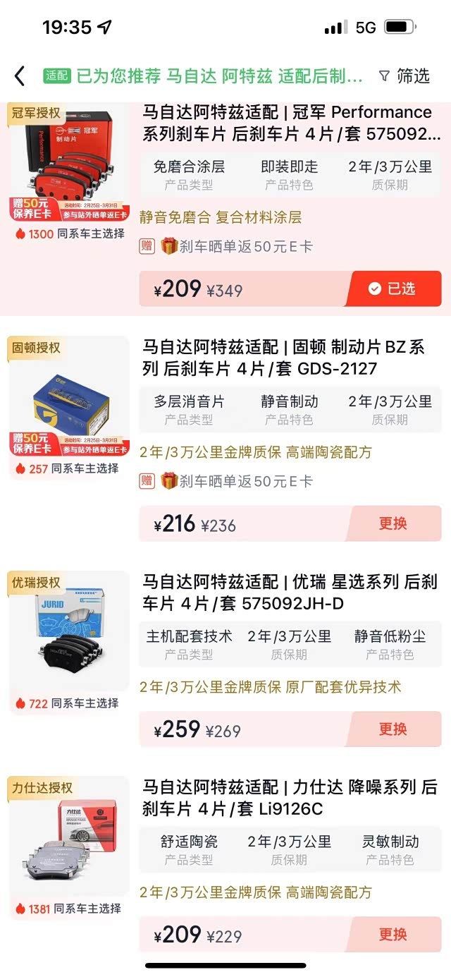 点击:0 | 回复:6 阿特兹论坛 >  阿特兹后刹车片选哪个好?途虎上的这几个怎么样?