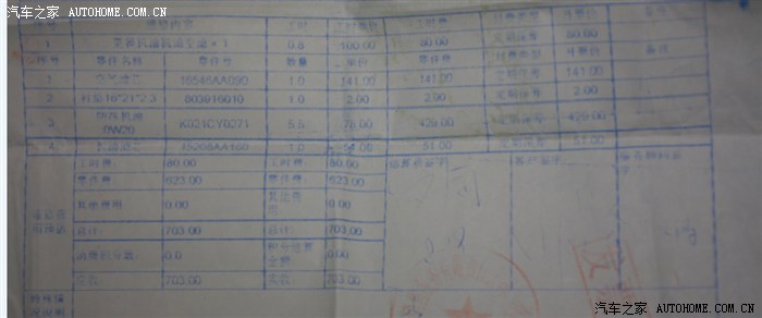 (这次本来可以不用换空气滤芯的,结果在仔细检查的时候给漏了,多换了一个空气滤芯。如果减去空气滤芯,只需要562元,还是很便宜的。)