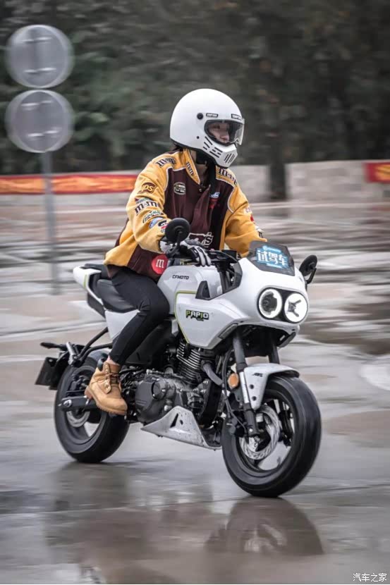 再来分享下试驾感受,本人女生,身高161cm,体重52公斤,骑上760的座高基本不是问题,有比我个子还要小的朋友建议选择低座版(740)。XO狒狒赛车手的车型尺寸不大,对我来说特别友好。正常的骑行姿势上半身会微微前倾,腿部的空间预留刚刚好,而且油箱两侧的夹持感非常不错。别看它呆萌,跑起来可是动力十足完全超乎我的意料!