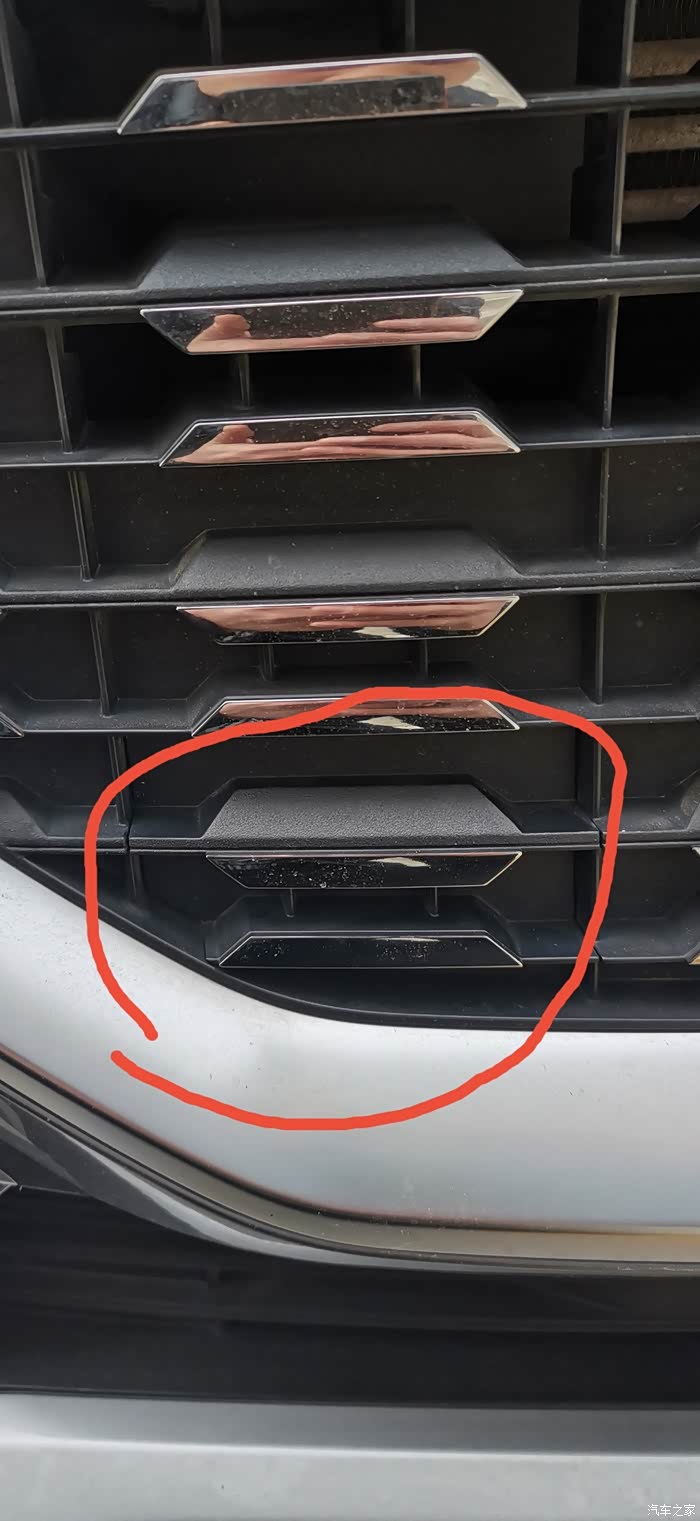 《使用手册》252页:拖钩堵盖位于前格栅的右下角位置,使用时用手指扣起前格栅拖钩堵盖三角形指示的缺口处,使其向上翻转待卡脚脱离格栅后,向前下方拔出即可。