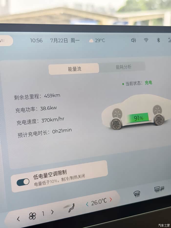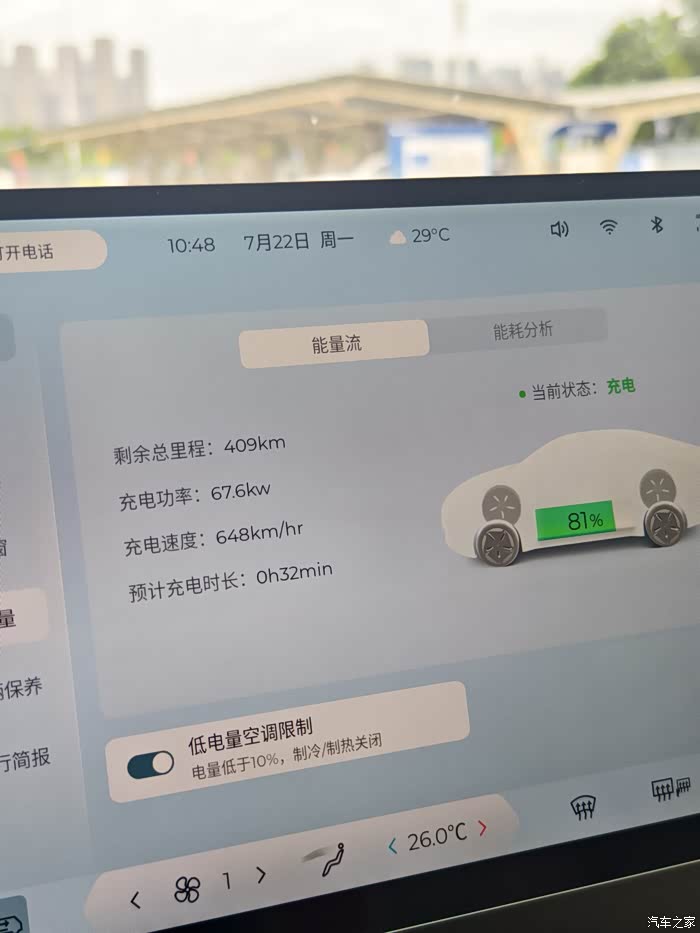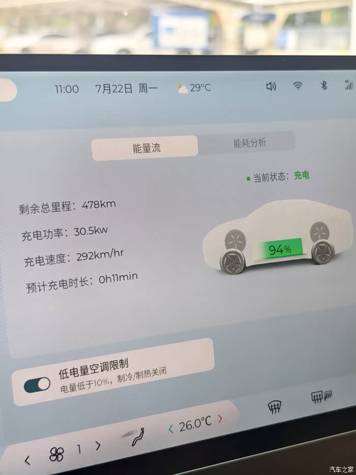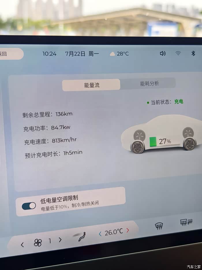 充电测试环境为近期新开的综合新能源站『液冷超充区域』;在充电的情况下,车机会有功率下降的提醒。