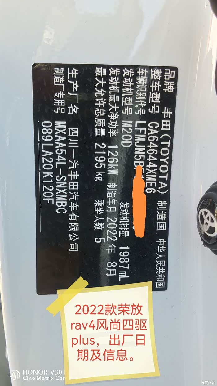 现车车型,22款荣放四驱风尚P,纯燃油2.0。