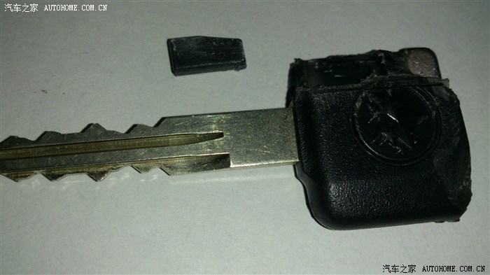 把钥匙的金属部分朝向自己,你会看见有一面有点不一样,有个小长方形的口子,防盗芯片就在那里,然后你得估摸着劲,找个锋利的刀子或钳子,一点一点拨开钥匙的胶木外壳,侧面大概0.5mm左右的厚度,后面多点