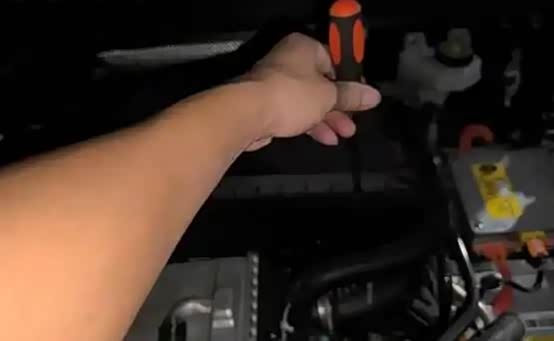 找到空气滤芯盒:在发动机附近找到黑色的空气滤芯盒,螺丝用螺丝刀给拧下来。