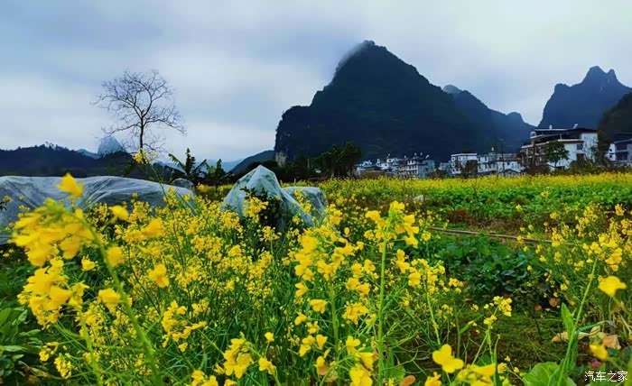 龙潭村位于阳朔县城西南约9公里,离月亮山风景区1公里,一条清澈的金宝河从村前静静流过。村后山峰形似龙头,山下有一深潭,面积约百亩,当地村民叫它为龙头潭,后简称为龙潭。过了金宝桥,眼前豁然开朗,田畴平整开阔,绿意逼人,正赶上油菜花开,黄花飘香,田园风光堪称一绝。接下来尽情欣赏壮族村寨的魅力!