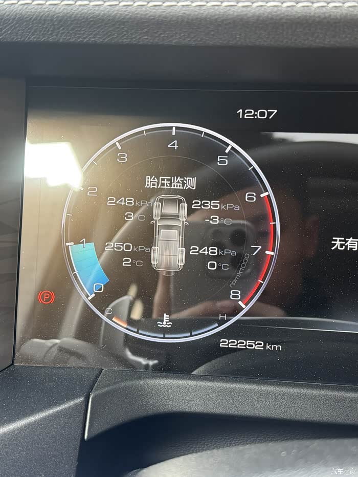 早上一上车胎压监测报警胎压低,跑了一会胎压回复正常了,大家冬季开车一定别忘了胎压补气,天气冷气体密度会降低。