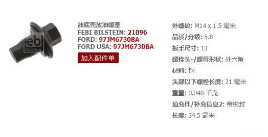 2013款嘉年华1.5L[油底壳放油螺丝]型号在内