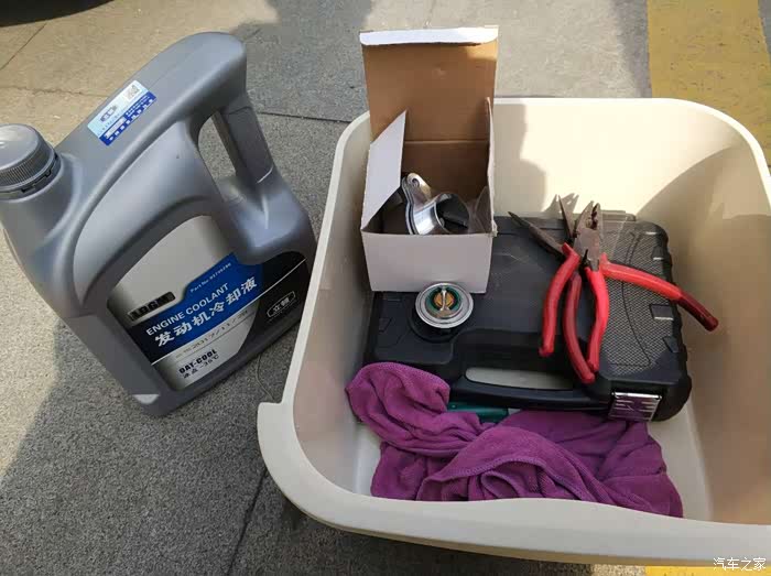 安装工具和材料,冷却液1桶4L是不够的,还差1.5L左右,我准备把放出来的重新加回去补足。