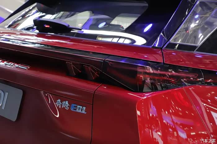 车身左右翼子板分别有快慢充接口,高配版采用了19寸低风阻轮毂,搭配225/55R19轮胎,隐藏式的车门拉手如今似乎已经成为了新能源品质车型的标配。奔腾E01采用悬浮式车顶设计,车窗顶部镀铬饰条延伸到D柱形成宽大的饰板,还有一个特别之处就是连体式的尾灯组向两侧延伸到后轮翼子板,几乎一直连接到后门边缘。