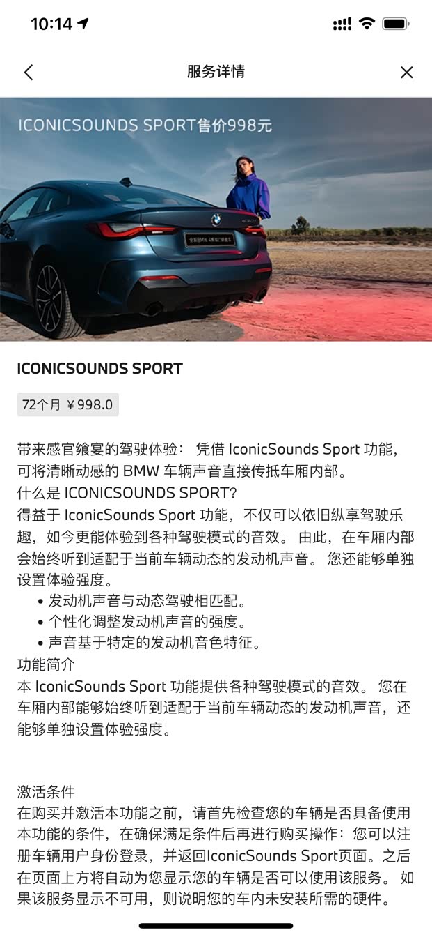 早上打开My BMW,发现互联驾驶商店已上线Iconicsounds Sport模拟声浪订阅服务,72个月998元,有率先安装体验的车友吗?