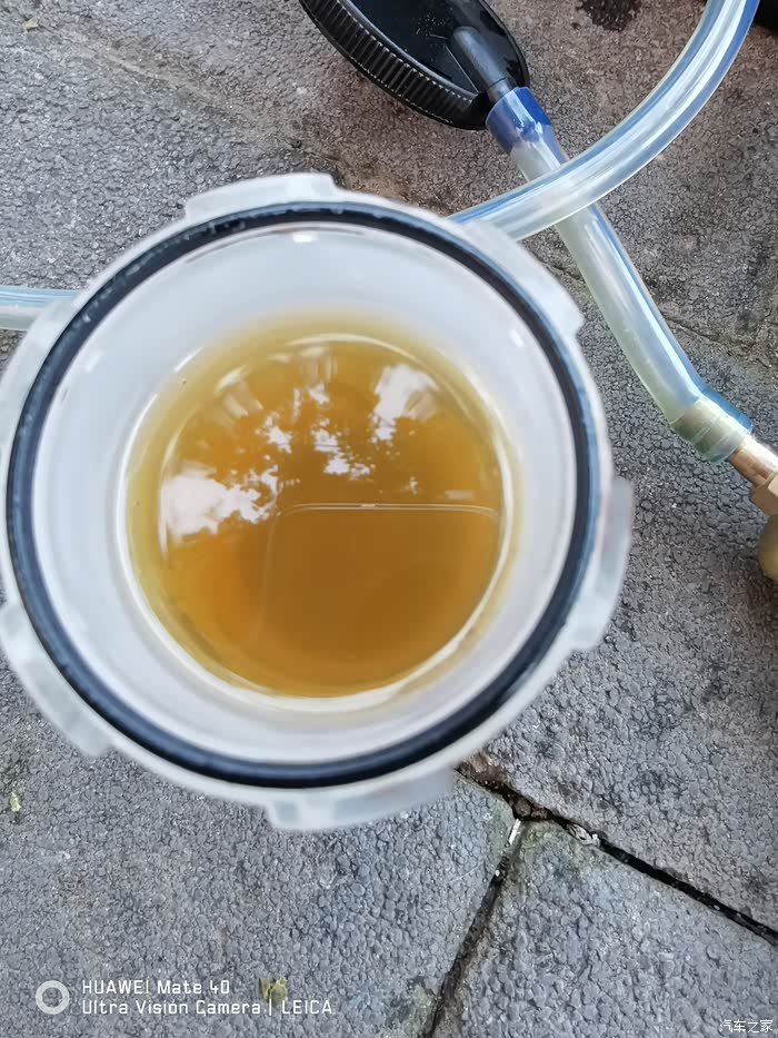 先抽刹车油壶油,手动真空泵油杯120毫升,刹车油壶约里面200毫升,这是抽第一杯油,应为没搅和,所以颜色没变。