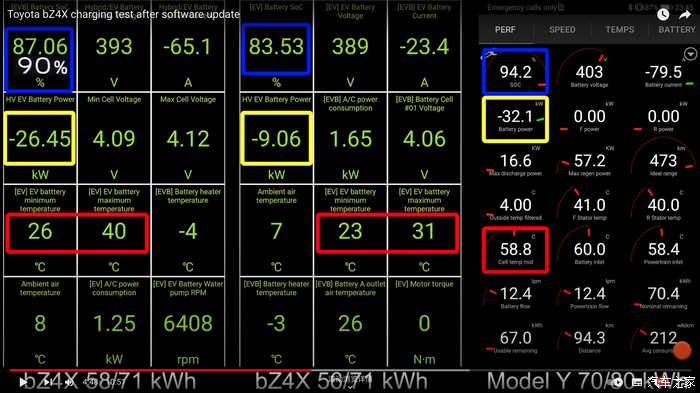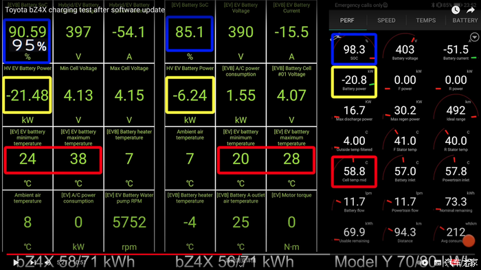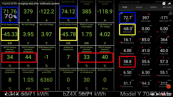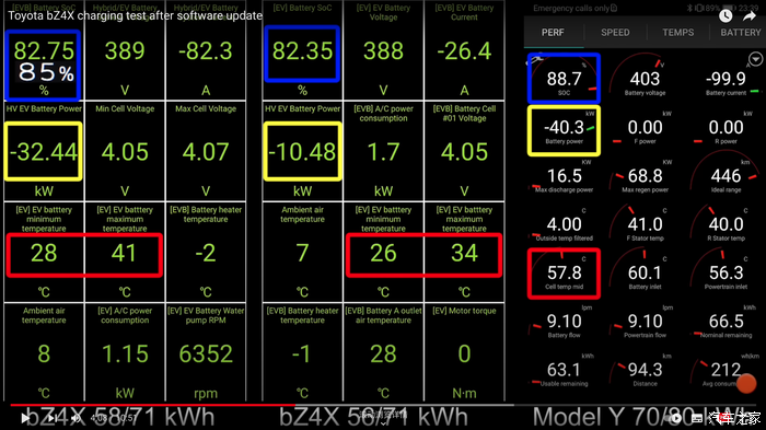 国外博主测试bz4x升级软件后,SoC 80%后的充电速度,对比特斯拉