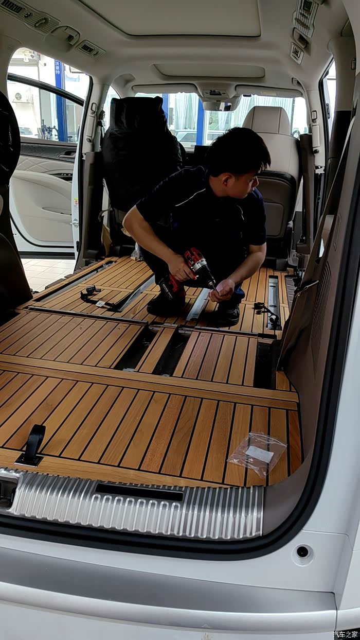 安装地板需要拆除座椅,技术人员安装还是比较认真和熟练的