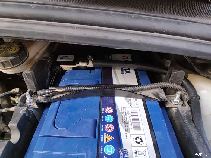 装好的效果,传感器线走电瓶固定杆中间。刚好有个槽卡线。