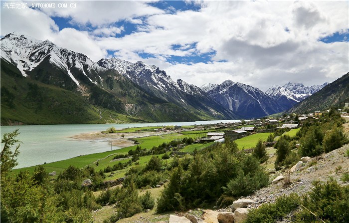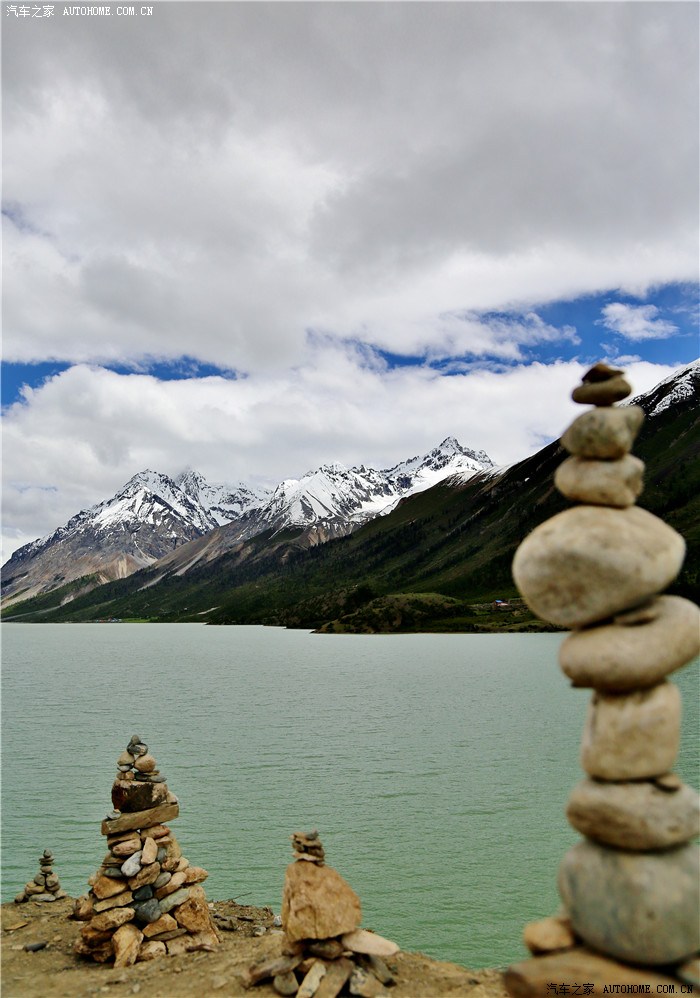 理塘下山看到的小姊妹湖,就在雪山脚下