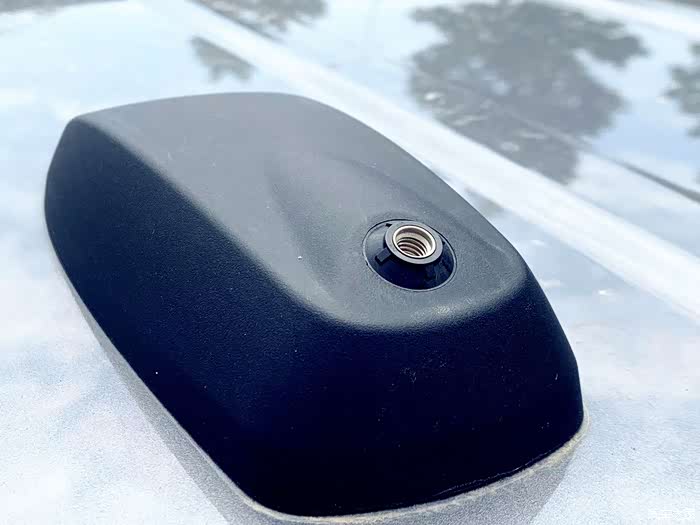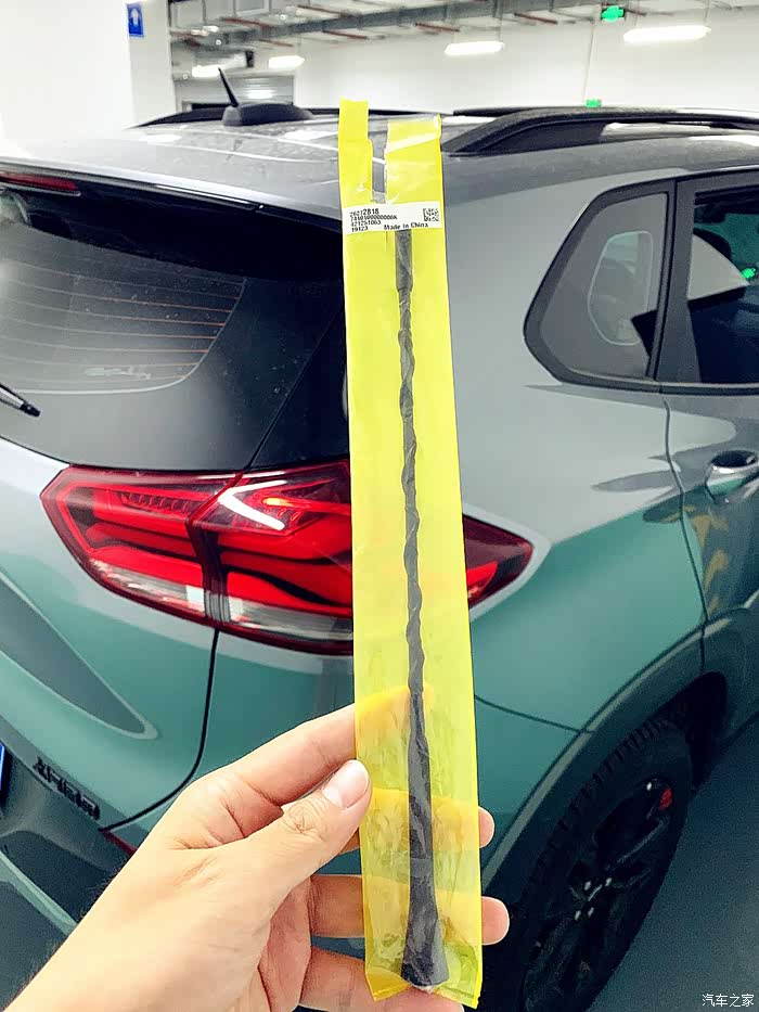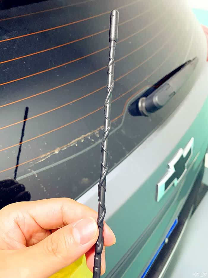 看天窗贴膜的时候,我才注意到,2019新创酷车顶部的天线模块是一个凸起,有一个空空的螺丝孔,然后我在副驾的手套箱里找到了一根长长的天线,应该就是原配的天线了。