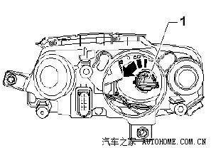 1.2.3 拔出示宽灯座;打开大灯灯罩后可以看到示宽灯座的黑色塑料片,如图5标注1所示。此灯座拔出方法有2种,1、逆时针旋转90°拔出;2、暴力直拔。本文为和谐起见采取逆时针旋转90°拔出后暴力直拔方式,这里要讲一下暴力工具的选择,第一次用手基本上是拔不出来的,钳子的操作空间是不够的,所以推荐使用持针器(如图3所示型号:细针J32030 J32050均可)。此物要自购的话一只没有60块以上的基本是垃圾,所以考虑到这货各医院门急诊、病房外科各科均常备,可以找医院的朋友借,由于钳夹塑料片可能导致持针器报废,切记别说实话,否则你朋友可能被管器械的护长弹jj到死为止。持针器尖嘴整个顺塑料片方向夹住塑料片并上钳后旋转90°可很趁手的拔出灯座,记住,用暴力。