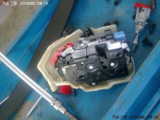 2011-9-4 上午去4S,故障依旧,维修接待看了故障现象后,说需要更换锁块。在保修期,所有费用免。拆左前门外侧门板,换锁块,复位。前后花了1.5小时。OK!!