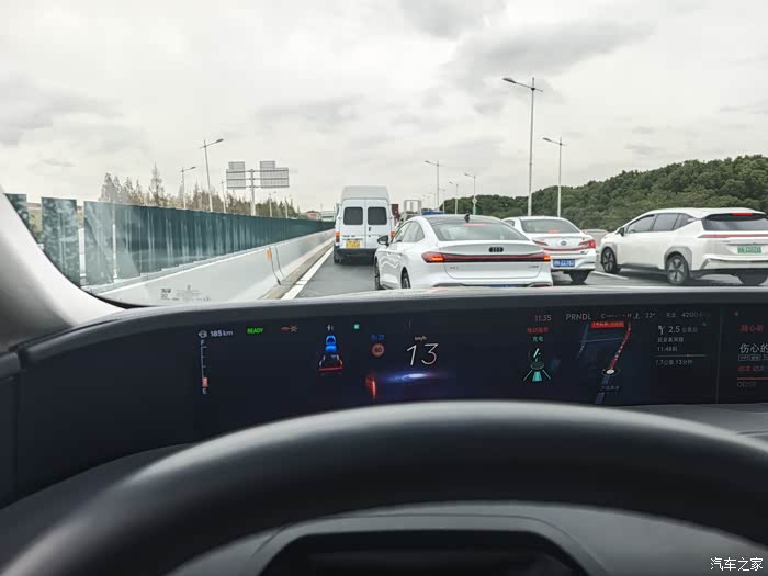 最让我满意的是,它连堵车时的走走停停也处理得游刃有余。前车停,它就停;前车走,它也跟着走。我只需要手扶方向盘,观察路况,脚完全可以从容休息。