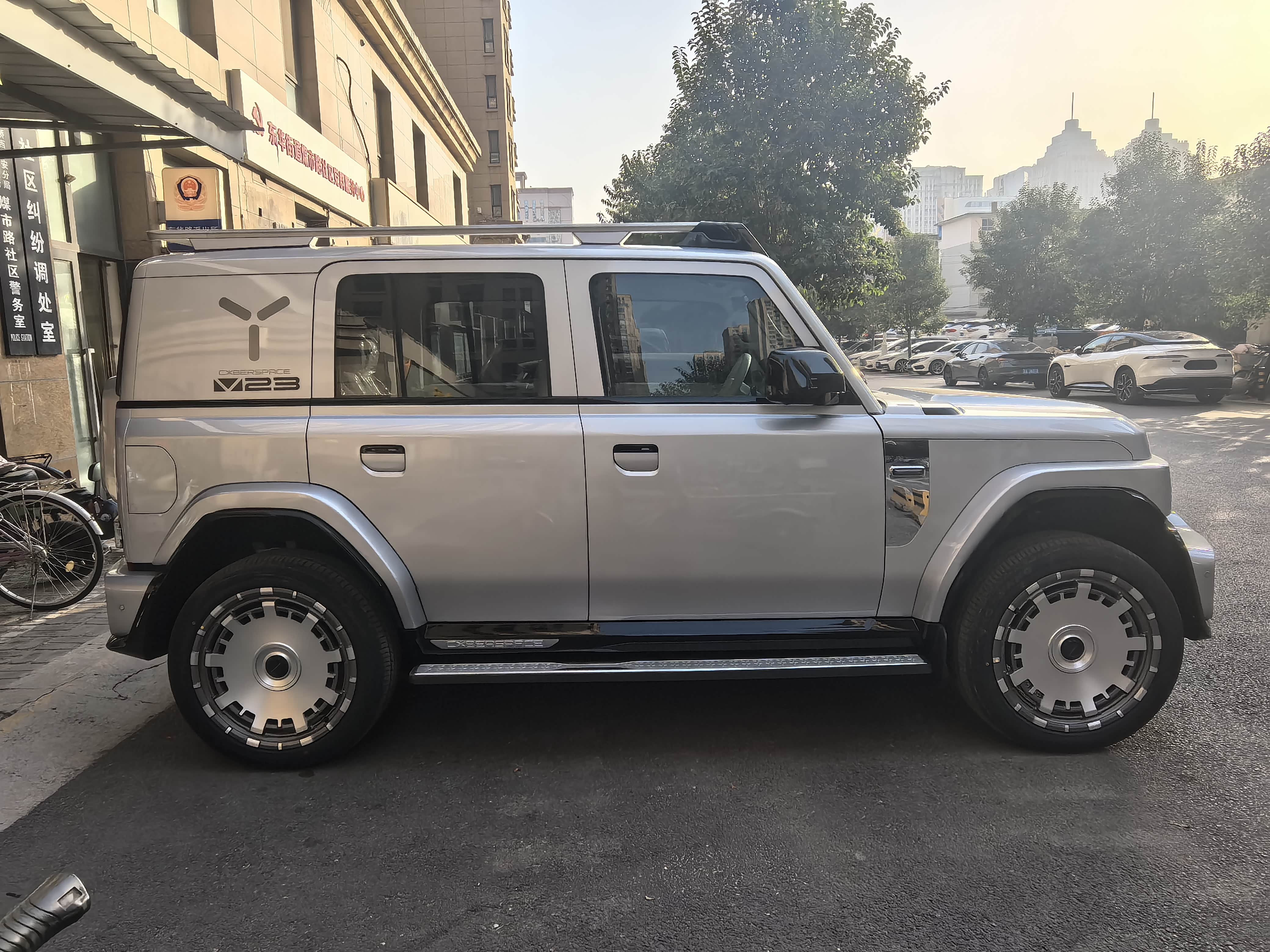 身边朋友陆续换了纯电车代步,虽然家里有一辆理想L9,但那是给媳妇专门接送俩娃上下学用的,我很少开,之前关注过小米YU7,但是尺寸太大,我平时开路虎发现5,媳妇的车L9,两辆都超5米了,就想着换一台小钢炮,小巧但是动力足够的,9月份新款V23S上市以后,455匹的马力、500公里续航、仅仅4米2的车身,这几个点正好吸引我了,外形也是我喜欢的SUV,就果断下定了,本来想定个四驱版的,然后再购买复古套件,我以前玩四海兄弟,很喜欢里面的真古车,结果经不住店里经理的忽悠,就定了赛博版的,所幸实车挺帅气;