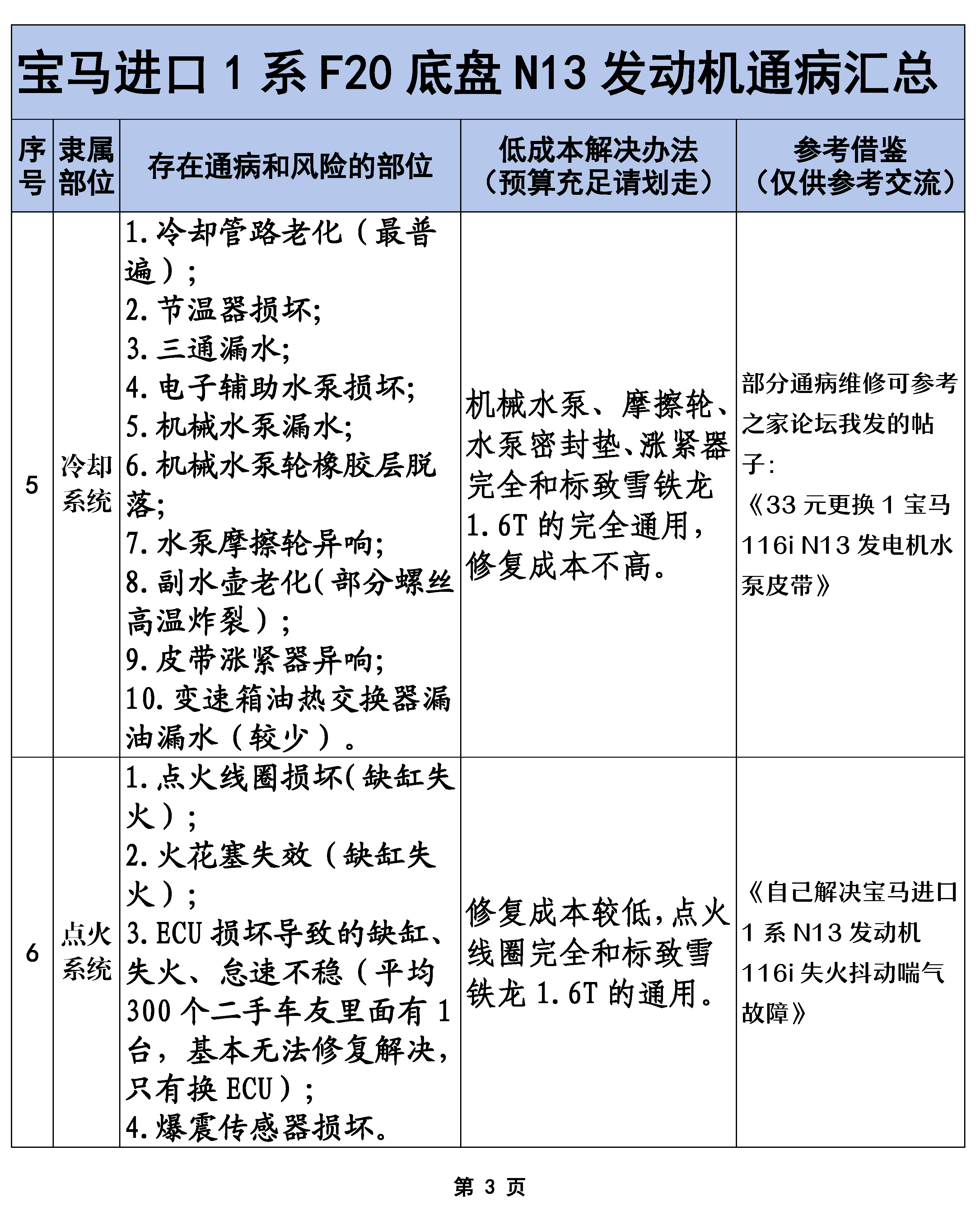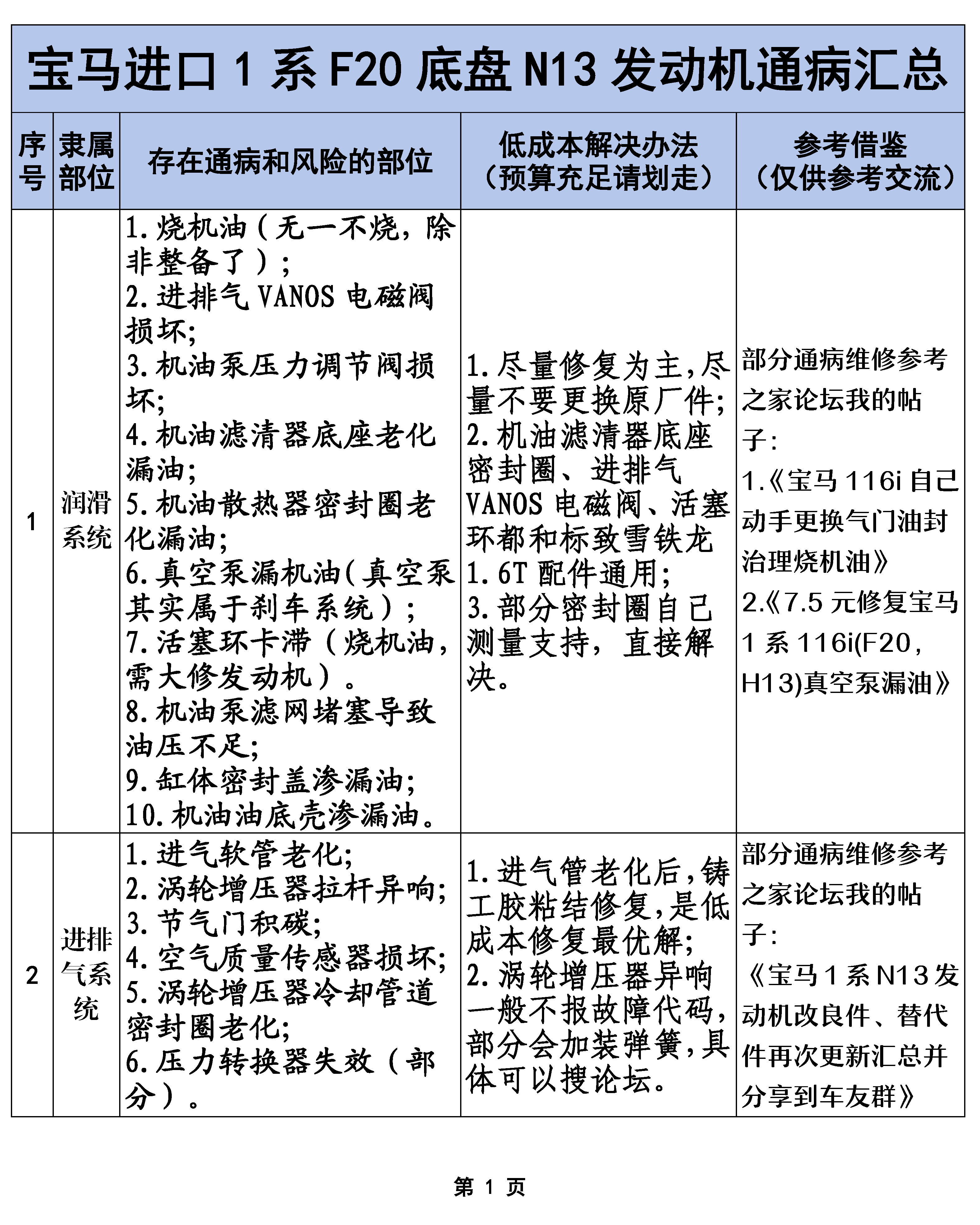 总结近2000名宝马进口1系F20车友46个发动机通病