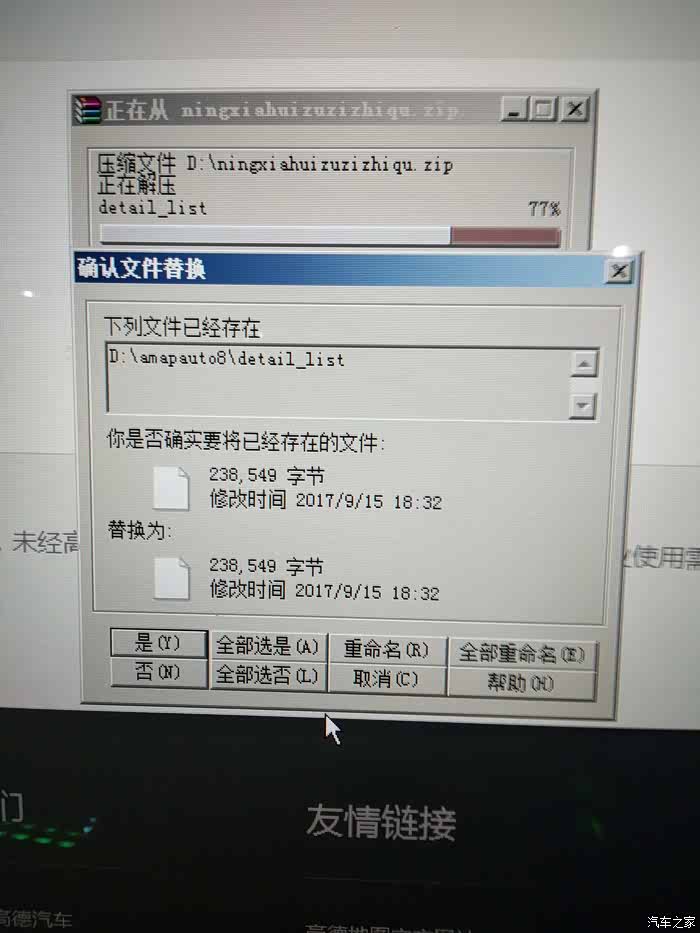 解压过程中出现此页面选择“全部选是”