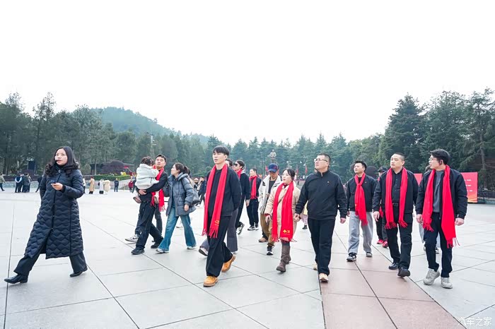 走进毛主席故居,黄泥墙、黑瓦顶的朴素院落里,每一件旧物都在诉说着那段峥嵘岁月。我和同行的伙伴一起,在故居前拍下了带着红围巾的合影。这条红围巾不仅是纪念,更是一种传承,提醒我们要把先辈的精神延续到车友会的运营中。