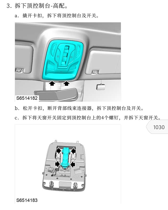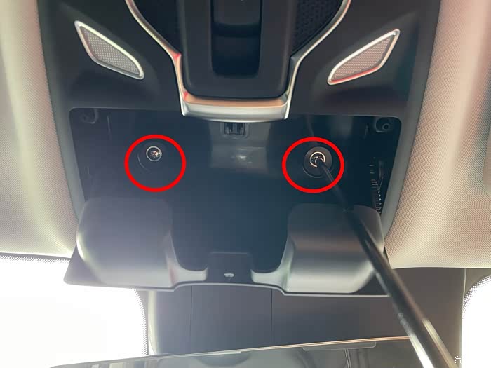 由于混动车型顶棚灯阅读灯集成都是眼镜盒,所以拆卸只需要两颗螺丝即可,油车由于被SOS占用,拆卸方式与混动不同,下图有说明