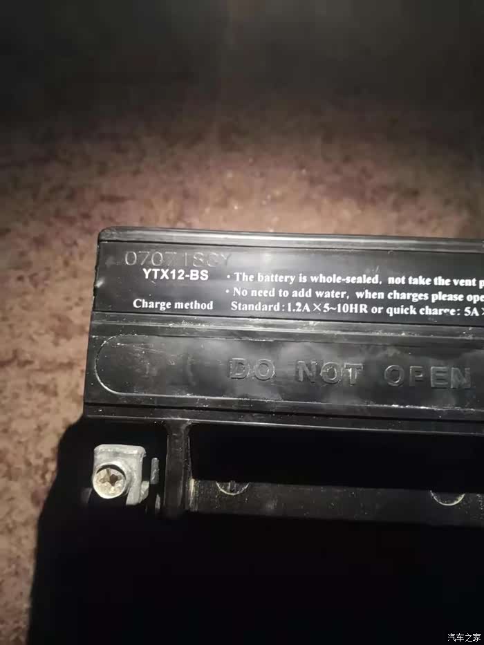 车上拆下来准备冲电时拍摄2019年4月的车用的是2018年7月7日的电瓶。