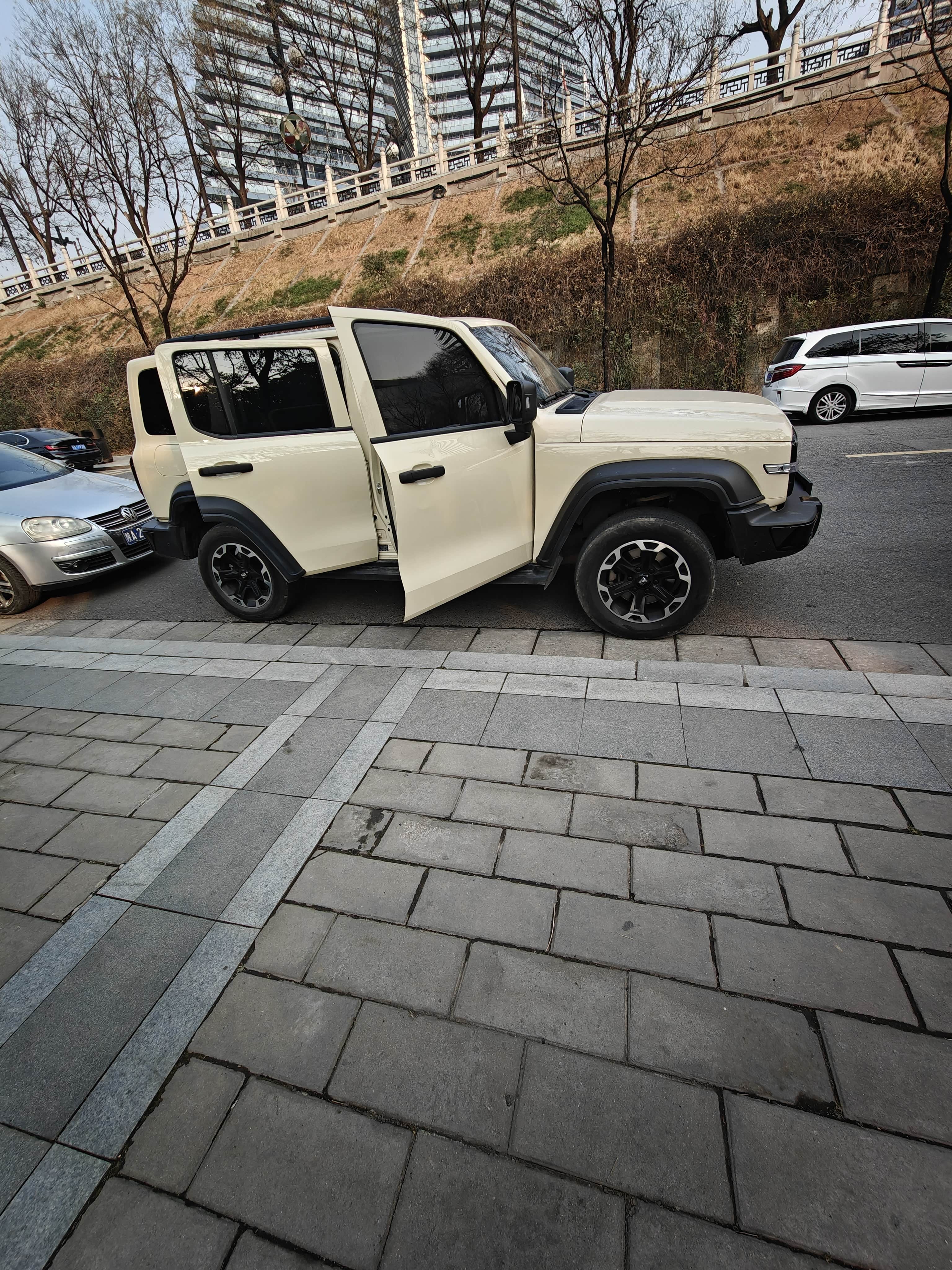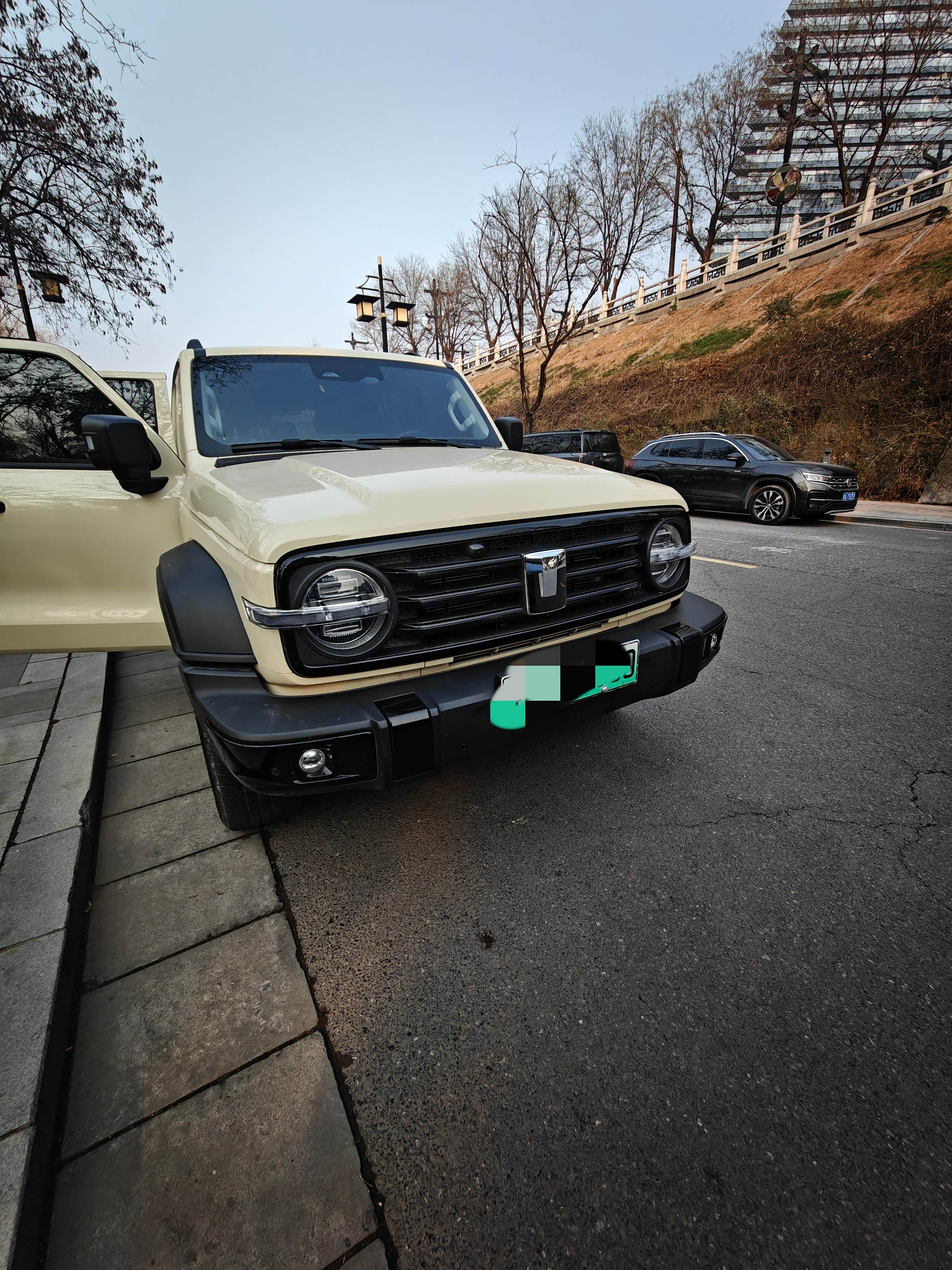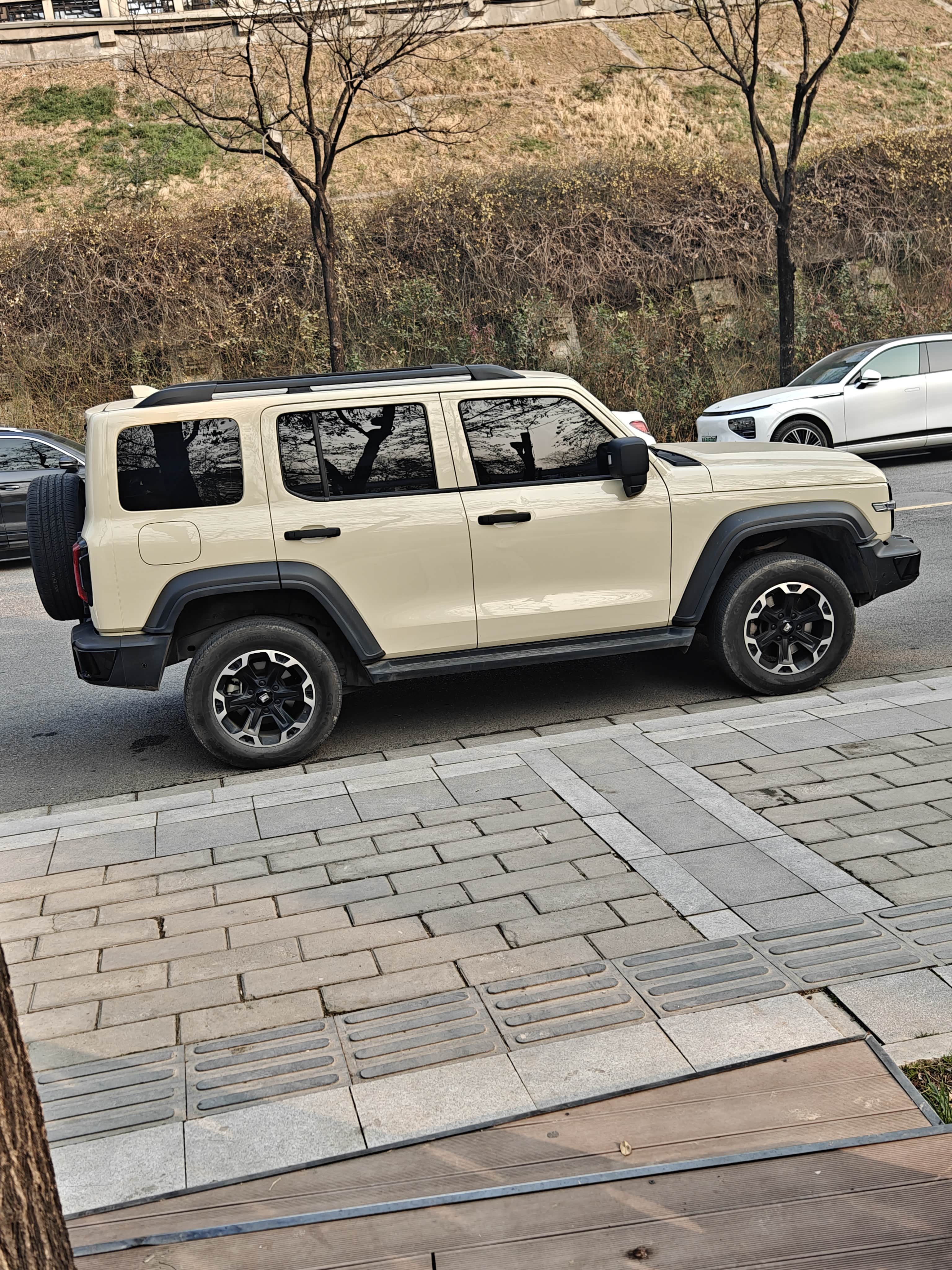 外观沙丘色漆面亮得反光,圆灯配方格子回头率超高。内饰软包不多但做工还行,中控屏反应快,就是360全景画面夜晚有点糊。按键布局顺手,怀挡三天就适应了,但方向盘加热有次自己启动了,后来发现是自定义按键误触,改设置后没再犯。