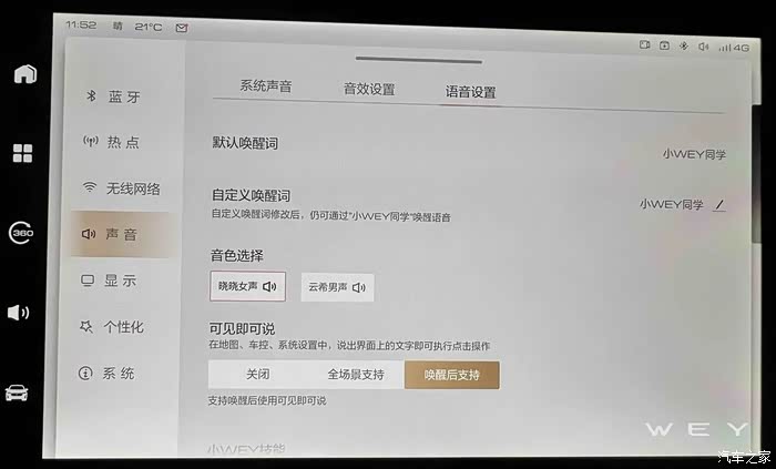 这里“叫醒”语音助手的,就是约定好的“口令”。在小魏同学上,我们可以用“小魏同学”“小WEY同学”来召唤语音助手,在车机“系统设置—声音—语音设置”中选择“自定义唤醒词”,可以设置自己喜欢的“唤醒词”。比如……“贾维斯”?